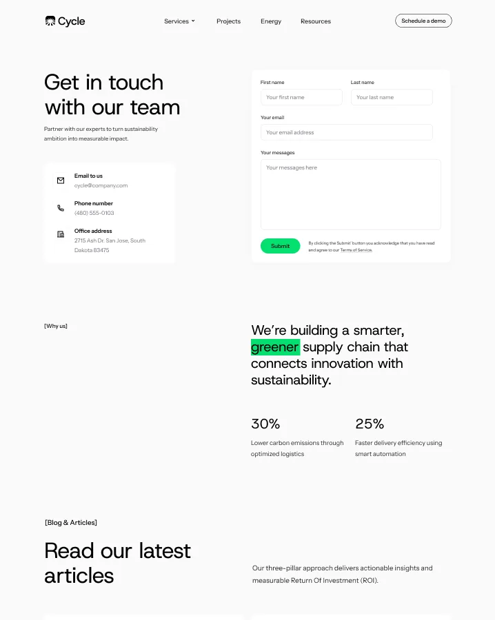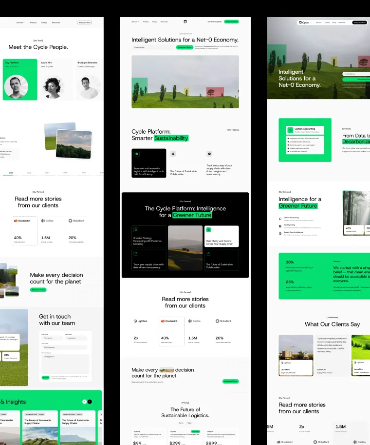 A modern enterprise template with clean layouts and a fresh, eco-conscious design, Cycle perfectly balances corporate professionalism with a modern, purpose-driven aesthetic.